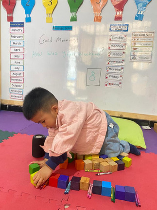 In our math session, the children explored the concept of patterns through a fun and hands-on AABB activity using crayons and cubes. They eagerly arranged the materials in repeating sequences, noticing how the pattern continued in a predictable order. This engaging activity helped them strengthen their observation, sequencing, and problem-solving skills while building a strong foundation for early math understanding. The children enjoyed discovering how patterns can be found and created all around them!