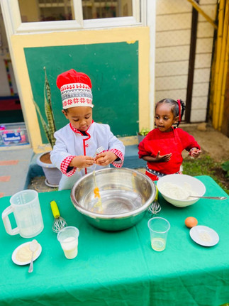 Our science session was very exciting and fun. The students learned science through a hands-on activity by making pancakes together. Each student had a turn to participate. They started by mixing the ingredients such as eggs, flour, salt, sugar, milk, and water in a bowl. The students took turns mixing the ingredients carefully until everything was well combined. They were very focused and enjoyed being part of the process. After the mixture was ready, we helped them by baking the pancakes. When the pancakes were done, the students enjoyed eating them with their friends. They were very happy and excited. All the students finished their plates and really loved the activity.