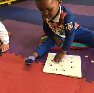 For Math we had an interesting activity, we gave them each papers which had dots drawn on them. We used pompom, Lego and Leads to count with. Then the children put Pompoms , Lego, Leads on the dots and they started counting. It will help them to build their counting skills and also critical thinking. Most of our children can count 1-10. The activity was very interesting.