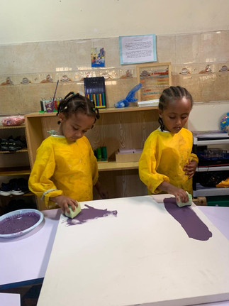 This week in our art session, the students had a wonderful time creating their very own egg art on canvas. We began by painting the background. Next, the children worked together to break the eggshells into small pieces — an activity they were especially excited about, as they had brought the eggshells from home.
