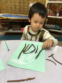 Our last Thursday art activity was all about the bonfire! While the children were looking to see the real bonfire we decided to make a card that has a small bonfire on it. We started off by going to the grass area to collect some small tree branches and sticks, then headed to the art studio.