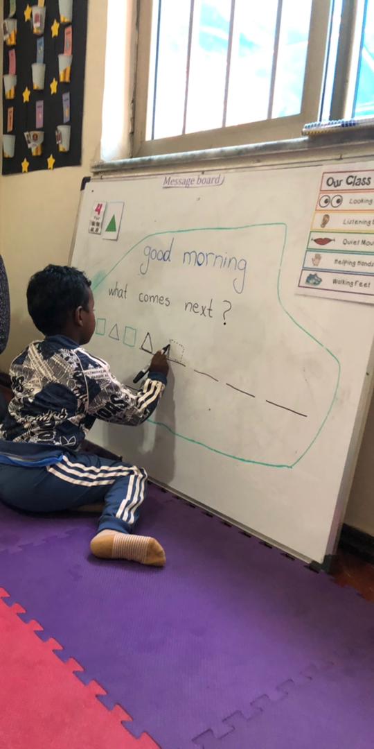 Science: For our science class we continued with our five senses topic and the focus was (listening and feeling). We put some music on, the students enjoyed closing and opening their ears to see the difference and for feeling, they tried touching different textures.