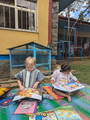 This week in our library session, we changed it up! Instead of reading in the usual library room, we took the books outside and read on a mat in the grass area. There were pillows, a tarp for shade and it was a lovely cozy environment for the children to sit and enjoy some reading! While they were reading, the class relaxed and sat in their own chosen spots. After they finished reading a book of their own choice independently, we finally read a book for the whole class. This time, our book of the day was called "Hooray for Books", a delightful and enthusiastic ode to reading. At the end of the session, we cleaned up our pillows together and put them back into our class. Making the outdoor "library" feel like a special event helps foster a love of reading and builds a fun connection between books and the natural world!
