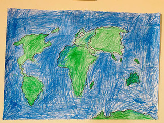 This week, our art session was both fun and team-spirited as we explored the 7 continents and 5 oceans. We wanted to create artwork that connects with our knowledge and symbolizes our unity on this planet we call home. Our art teacher, Asnake, drew a map of the 7 continents on a large sheet of white chart paper, which we displayed on one of the school bulletin boards. We divided the students into two groups. While the first group colored the continents green and the oceans blue, the other group created macaroni jewelry, making necklaces and bracelets. This approach kept both groups engaged and productive, allowing them to enjoy both art activities by switching roles. The final map turned out beautifully, resembling an actual world map. We’re proud to have it displayed in our art corner, where it serves as a reminder of our collaborative effort and creativity.