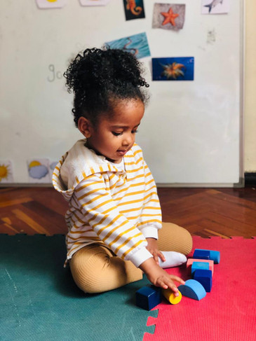 During our math session, we focused on exploring AA, BB patterns with the help of wooden blocks and soft blocks. In this activity, we arranged the sequence of wooden blocks and soft blocks by alternating between two wooden blocks and two pieces of soft blocks. This exercise encouraged the children to think about what comes next in the pattern.