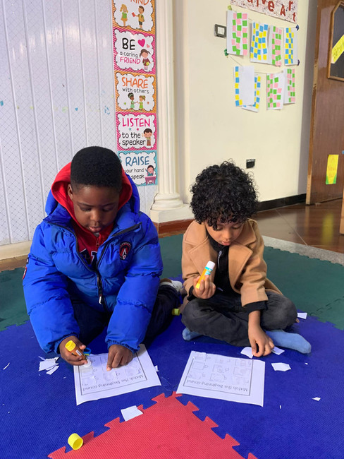 This week in literacy, the Pre-K class matched beginning sounds with pictures. The pictures were ones they have been learning about for the past few weeks. This time, by looking at the letters, they cut out the pictures with scissors and glued them onto the beginning sounds of the letters. This activity really helped them develop their fine motor skills while also recognizing the sounds of the letters.
