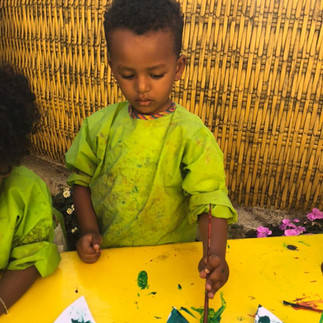 we had an interesting activity, we made Christmas socks using red and green papers and they chose the color they want for their socks and after choosing their preferred color paper they started sticking cotton in their socks and the outcome was really amazing and they were all engaged and had fun while doing the activity.