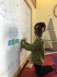 Our large group session is the most important part of our day, as it sets the tone for how our days will unfold. Prior to our small group activities, we use our large group whiteboard to practice and discuss the topics and how each one will be approached. This helps the children to fully engage with all our activities, and is a great time to discuss any initial curiosities and questions. This week, we revisited the seven continents using the globe in our class, and now we've started studying each continent in depth. We began with Africa, exploring fun facts, the largest country, and the largest city. The children also colored a map of Africa.