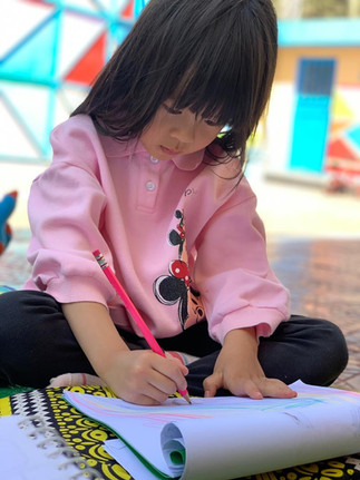 This week, we took our journal session outside. We laid out a mat together as a team and brought some pillows from the classroom to create a cozy space for concentration and drawing. We had a great time having conversations and sharing our drawings and ideas.