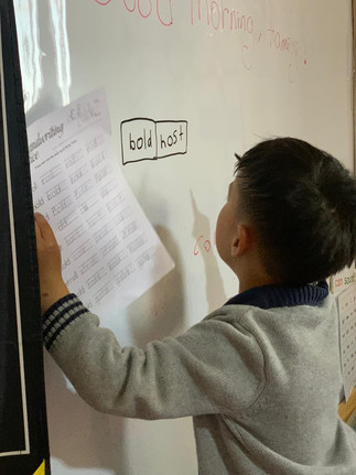 This week, our literacy focus was on handwriting. We practiced writing using handwriting sheets that included tracing and rewriting exercises. In the first class, our children read sentences, traced them, and drew pictures based on the sentences. This sparked their curiosity about which animals or objects they would be drawing after reading, allowing them to exercise their reading skills. Our next literacy activity involved reading words, tracing them, and rewriting each word three times, which also helped improve their reading and writing skills.