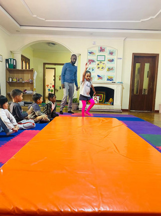 This week in our gymnastics session, we invited a guest trainer, Tesfaye, from the Admin team. He trained our children in a fun and engaging way. Our children had a blast with some acrobatic training, and they thanked him at the end. It was a wonderful moment!