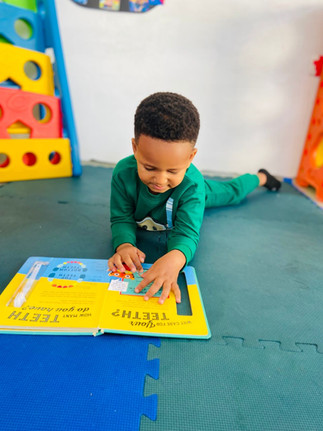 In our library session, the children had a wonderful and peaceful time exploring books. Each child selected a favorite book and spent time looking through every page, enjoying the pictures and stories at their own pace. The room was calm and cozy as they focused on their books and shared their discoveries with friends. At the end of the session, the children worked together to return the books to their proper places. It was a joyful experience that helped nurture their curiosity and love for reading.