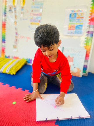 In this week’s literacy session, students worked in their journals. First, they planned what they wanted to draw, then we gave them their journal books and favorite crayons. Afterward, we asked if they followed their plan or changed their ideas. Most students followed their plan, while some came up with new and creative ideas. We truly encourage our students to express themselves through drawing and enjoy the process of creating!