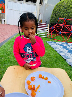 After the discussion, the children used plastic cutters to carefully cut the soft, boiled carrots. They were very engaged and curious throughout the activity. Finally, we invited them to taste the carrots, and they really enjoyed the experience, showing excitement and interest in trying the food.