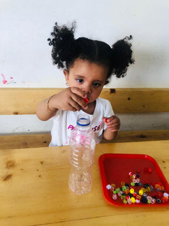 Our latest literacy activity was a colorful delight! To begin, we prepared different colors of beads, glitter, empty water bottles, water, and cups. Before starting, we explained the materials and showed the children how to make their sensory bottles. The children began by placing the colorful beads into their empty water bottles one by one. They focused carefully and enjoyed choosing their colors.