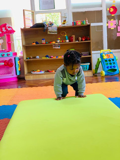 Our most recent gymnastics session was full of energy and excitement! We began with a warm-up activity to get our bodies ready for movement. The children followed along enthusiastically as we stretched, jumped, and did light exercises to prepare for our gymnastics practice.