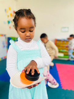 At the Ethiopian Center this week, the children enjoyed exploring the various cultural materials and resources available. Some wore traditional clothes, while others pretended to make shiro and coffee. Everyone had fun helping each other and talking together. It was a beautiful time of learning about culture through play.