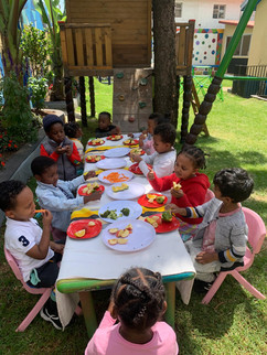 This week in art, we worked on a coloring activity that combined science concepts with creative exploration! Connecting projects interdisciplinarily helps ideas to become more familiar for students, and introduces them to how different things connect to each other. To add an extra layer of interest, we did our art session outside- the whole class went to the grassy playground area, set up the table and chairs, and the students colored fruits and vegetables based on their colors of choice.