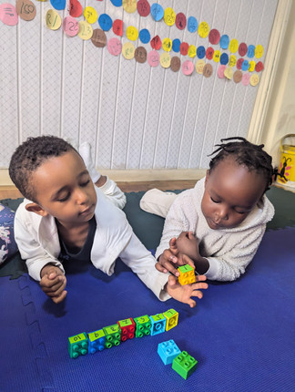 In our second session, we used the blocks to assign a number to each student. Then, the students worked in pairs to count backwards and arrange the blocks in order from 10 to 1. At this point, the students helped and learned from each other, and had so much fun doing so!