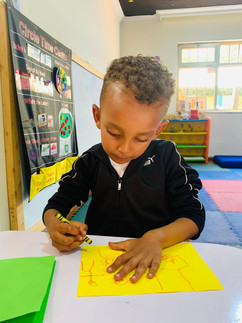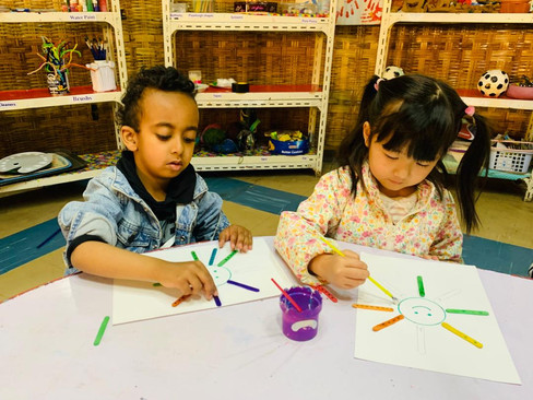 In this week's art activity, our class full of innovators made an intriguing creation- a "Popsicle Stick Sun". First, we all counted together while using a marker to dot each popsicle stick from 1 to 10. Then, the students glued the numbered popsicle sticks around the edge of a circle to create the sun's rays. After that, we counted all the dots on the popsicle sticks surrounding the sun. Our students really enjoyed combining math and art through counting and sticking. This activity was a simple and engaging way to practice counting while creating something bright and cheerful.