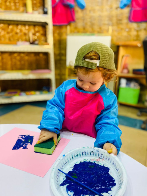 In our art session this week, we had a fun and creative time exploring the rectangle shape! We began by discussing how many sides a rectangle has and identifying its unique features. After our discussion, we headed to the art studio where students chose their favorite paint colors. Each student was given a rectangular-shaped sponge to work with. They dipped their sponges into the paint and stamped them onto paper, creating beautiful and colorful patterns. It was a joyful and engaging experience for everyone. Each student created their own unique piece of art using the rectangle shape. We’re so proud of their creativity!