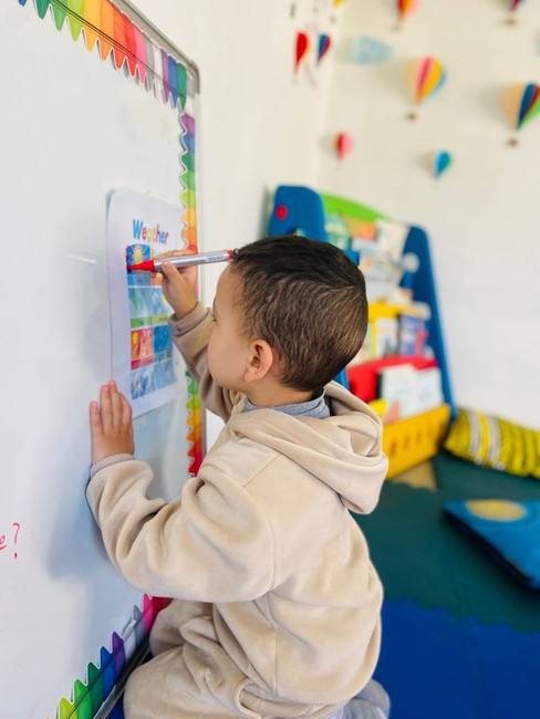In this week’s large group sessions, we gathered in a circle with our students and had a wonderful time sharing and learning together. We started by discussing the students' morning routines at home. Many shared that they use the bathroom, brush their teeth, and eat breakfast before coming to school. After our discussion, we sang our cheerful “Good Morning” song and took attendance. We also talked about the days of the week and observed the weather for the day. On our message board, we explored the square shape—focusing on its sides and corners. The students were very engaged and participated actively throughout the session. It was a great start to our day full of learning and connection!