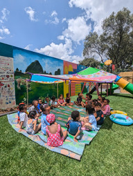 Next, we transformed our school slide into a water slide! With the help of water pipes, we poured water from the top of the slide, allowing our children to slide down onto the grass. We also had two pools set up in the sand area - one filled with water and small beach balls, and another play pool. Our children enjoyed tossing the balls around and splashing in the pools. To add to the fun, we organized a sandbox activity where they could dig and build in the sand, creating their own little beach paradise. After all the excitement, our children enjoyed a well-deserved nap, followed by the lemonade they had made, along with refreshing watermelon and cookies. It was an amazing day filled with smiles and unforgettable memories!