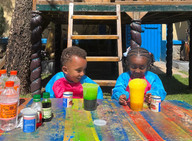 For art, our children took their handmade books and made them even more special. By the infants and toddlers area, they used watercolor paints, ribbons, shapes, and creative touches to decorate their covers. Some added initials, others painted patterns, and a few even created their own symbols. Each book became a beautiful expression of their imagination and a treasure they made with their own hands.