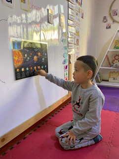 Our weekly book was “The Show and Tell Frog,” which couldn’t have been more perfect since our learners will have their own show and tell this coming Tuesday for Literacy. The story sparked so much curiosity, and they already started planning what special item they want to bring. Outside of our usual routine, our weekly lesson focused on the solar system. Because our school is building a Space Center, we introduced the planets and zoomed in on learning about the sun; its warmth, its light, and why it’s so important. Our children participated eagerly, sharing what they knew, asking curious questions, and showing so much excitement as they began connecting this new knowledge to the space themed projects around our school.
