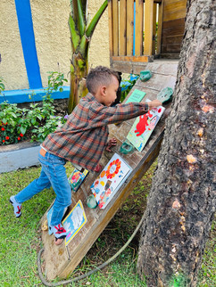 Science was extra special this week with our bean planting project! After talking in class about what plants need to grow, we went outdoors where each child planted their own bean in a clear plastic cup labeled with their picture. Taking turns, they scooped soil with shovels, placed their beans, covered them with more soil, and watered them before placing them in the sun. The excitement on their faces was priceless! In the second session, we went back outside with papers and pencils for a plant journal activity. Each child observed their cup carefully, looking for signs of sprouting, and drew what they saw as their first observation. This hands-on project is helping them understand nature while practicing patience and responsibility.