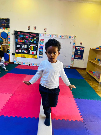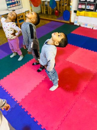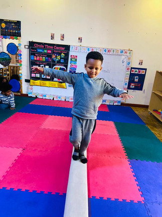 In our gymnastics session, the students focused on developing balance and coordination through fun activities. We began the session with stretching and light jogging to warm up our bodies and get ready for movement. This helped the students feel energized and prepared. After the warm-up, the teacher explained how to walk on the balancing board safely. The students were encouraged to stretch out their hands to help keep their balance. One by one, each student took a turn walking on the balancing board, giving everyone a chance to participate. The activity went amazingly well. The students were confident, focused, and excited to try. It was wonderful to see them support one another and enjoy the experience while building important physical skills.