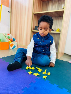 In our recent math session, we made learning fun and meaningful by combining math with colors and hands-on activities. We started the lesson by asking our students a simple question: “What is your favorite color?” This immediately captured their interest and encouraged everyone to participate. After sharing their favorite colors, the students began sorting pom-poms and animal toys by color. They carefully selected the items that matched their chosen color and grouped them together. This activity helped the students practice sorting and categorizing while enjoying play-based learning. Once the sorting was complete, the students counted how many items they had collected. They proudly shared their numbers with their friends and the teacher, building both confidence and early math skills. The classroom was full of excitement, and the students were very engaged and happy throughout the session. It was truly a fun, interactive, and joyful math experience for all.
